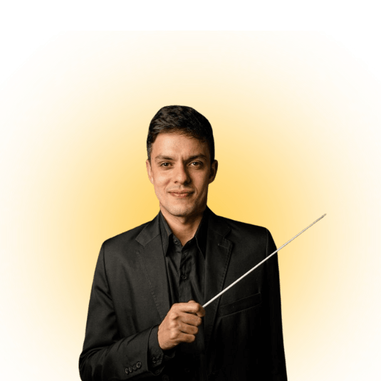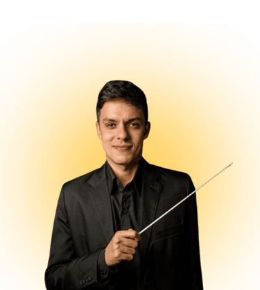 Você aprende gestos práticos, diretamente aplicáveis, que fazem a orquestra entender e responder à sua regência.